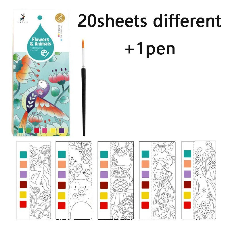 Unleash Creativity on Every Page: Delight your little artist with our Portable Children Watercolor Painting Book, featuring 20 sheets of Gouache Graffiti Pictures and a handy coloring pen. This Water Drawing Books Set is not just a toy, but a portable canvas for your child's imagination, perfect for on-the-go creativity and fun.